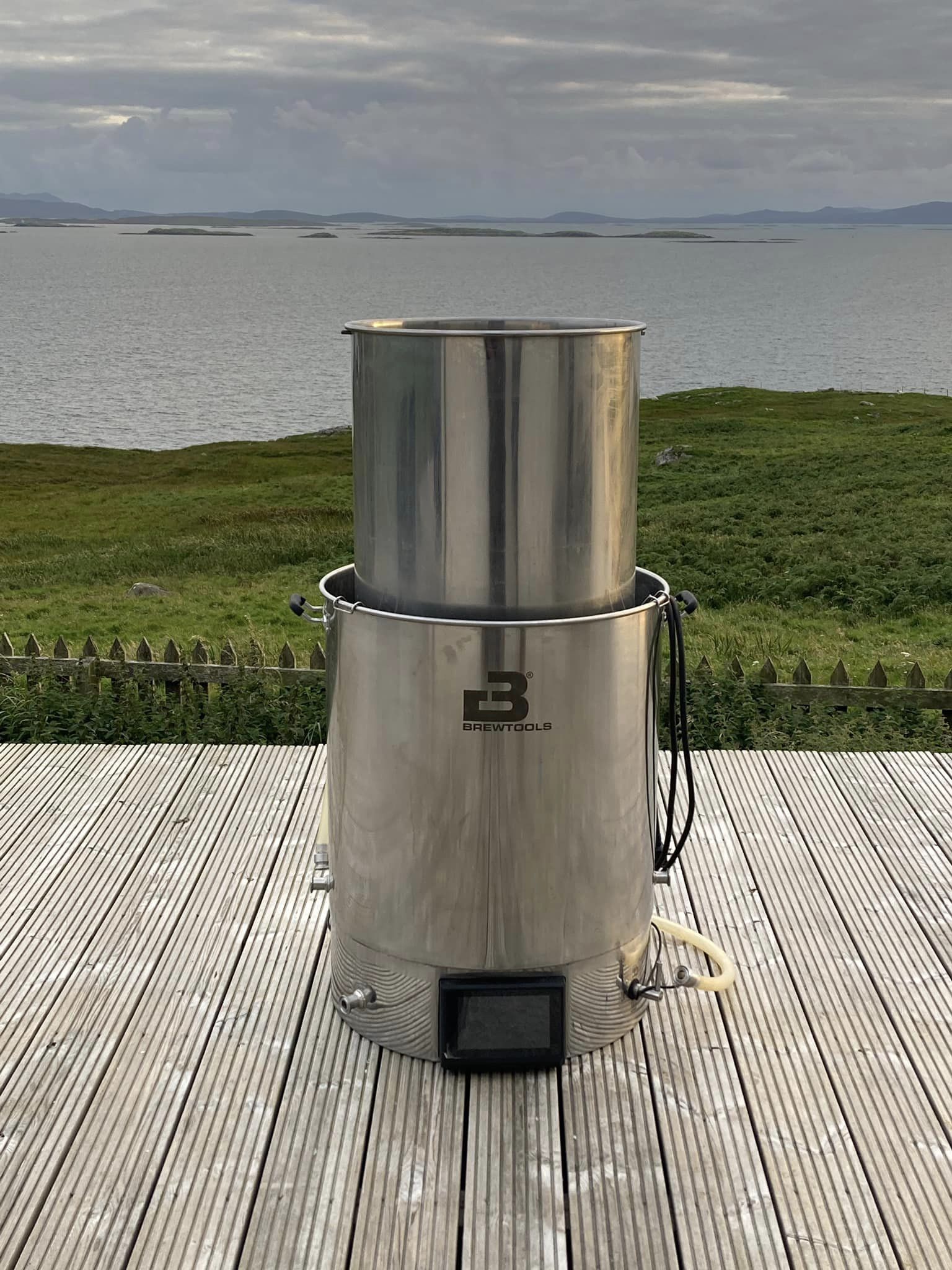by a bigger or shinier piece of brewing equipment, we took the plunge and upgraded our brewing vessel (again!) Nick collected the new tank on an epic 48 hour road trip from Borrisdale to Bedfordshire and back (via Dunfermline to drop off a bolt of tweed for our friends at Borrisdale Tweed and Manchester to collect a new Brewery van). At around the same time we were given the opportunity to rent some storage at the old coastguard’s hut in Leverburgh which allowed us to free up some much needed space in the Brewshed. This new equipment has allowed us to increase production so that we are now brewing five times the amount of beer we were when we started in July 2020 and although we may have said this before, this is definitely our last upgrade as our tiny tin Brewshed is now absolutely at capacity.