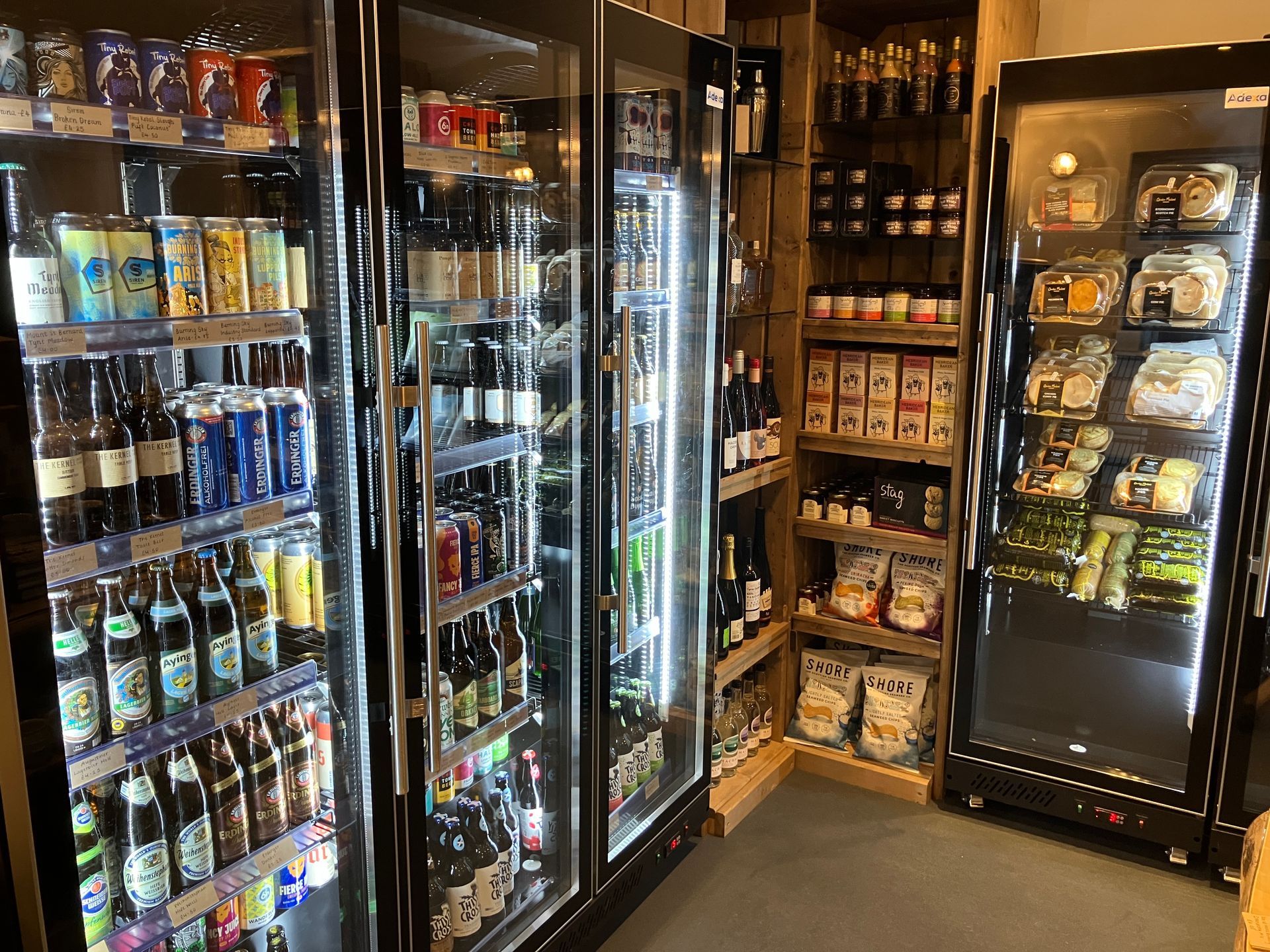 The next job we tackled was changing the old bar into a bottleshop and deli. This is probably the biggest transformation of all and one we are very proud of because it showcases so many of the fabulous local suppliers and makers of the Hebrides. We are loving working with two local businesses to fill our bakery counter, Croft 36 from Northton and Lucy from Leverburgh and our customers are loving having somewhere to come for tea and cake. We serve our own blend of coffee, The Taproom Roast, from Uist and Hebridean blended tea from Tiree. We also stock products from lots of local producers: Salmon for Uist, Black Pudding from Stornoway (of course) Charcuterie, biscuits and Sparking water from Lewis & Mustard and Wild Eve from here in Leverburgh. One extremely large fridge is reserved for beer so in addition to our own bottled beers we stock ales from small breweries all over Scotland and our favourite beers from Belgium and Germany. We are proud to be the largest delicatessen in the South of the Long Island and the only beer bottleshop in the Outer Hebrides.