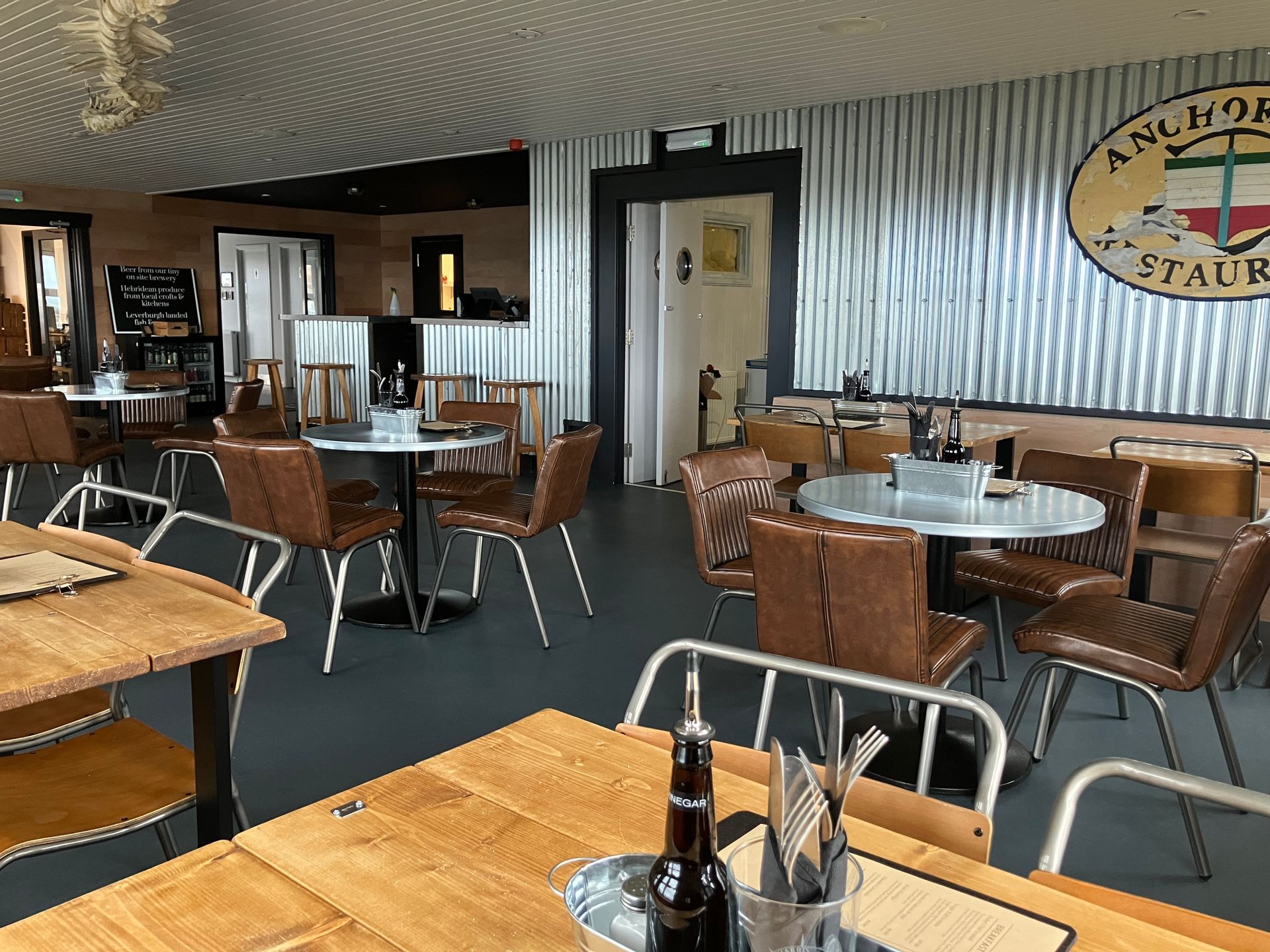 When we set our opening date we knew it was going to be a rush to the finish line. In the last two months we have had tradesmen here around the clock. What once seemed like a fairly simple refurbishment project quickly turned into a major renovation. We have made changes to the layout and the look of the "Anchorage" as it will forever be known but the one thing we were sure we didn't want to change was the feel of the place. For twenty five years this restaurant has been the meeting place for people who live and work in South Harris and the thousands of visitors who pass through Leverburgh every year .